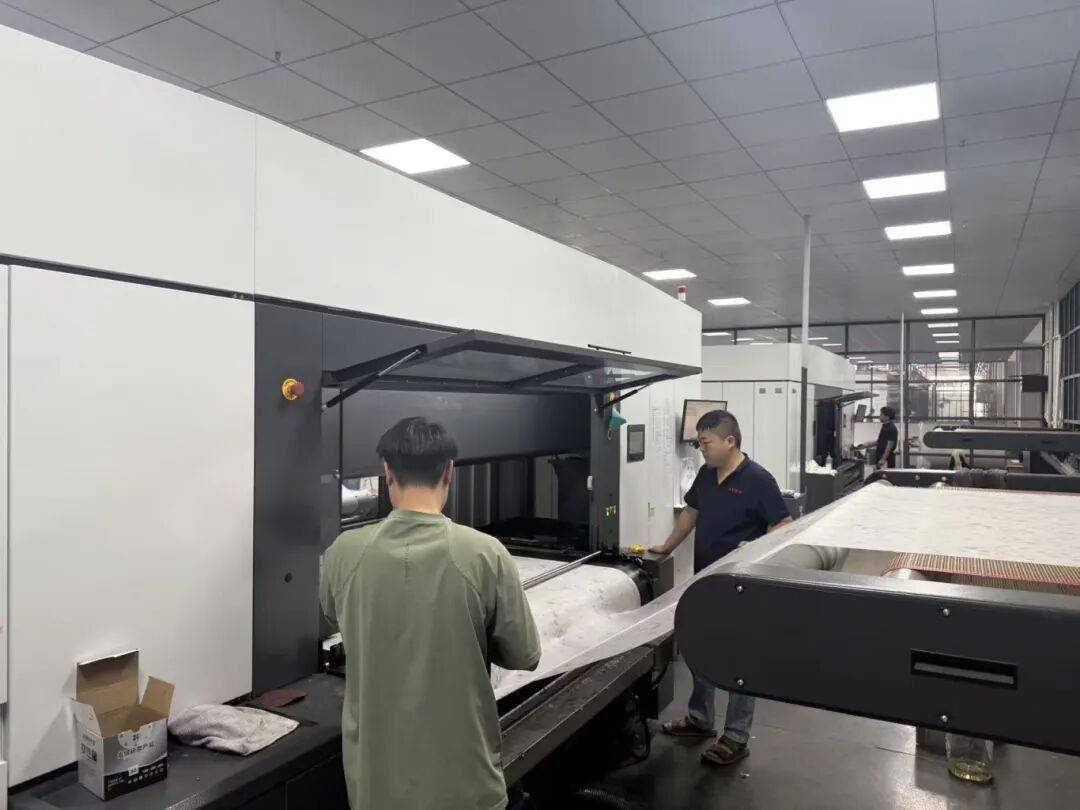 别的,新纺数码还缔结了高设备装备采购合同,装备估计年前到位,一楼有众台数码印花装备正正在装置调试。李总揭露,待一切装备美满后,公司日均产值将会抵达50万米,月产起码1500万米,年产值希望打破6亿元。
